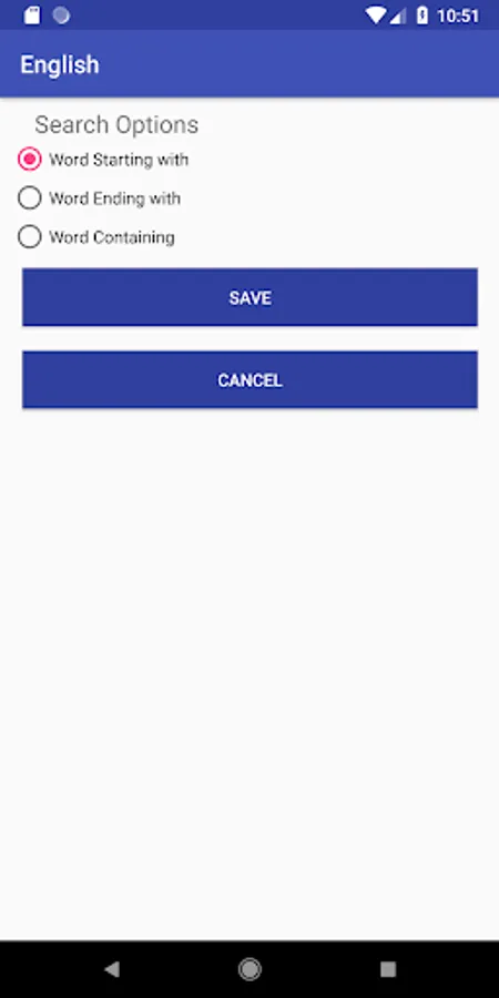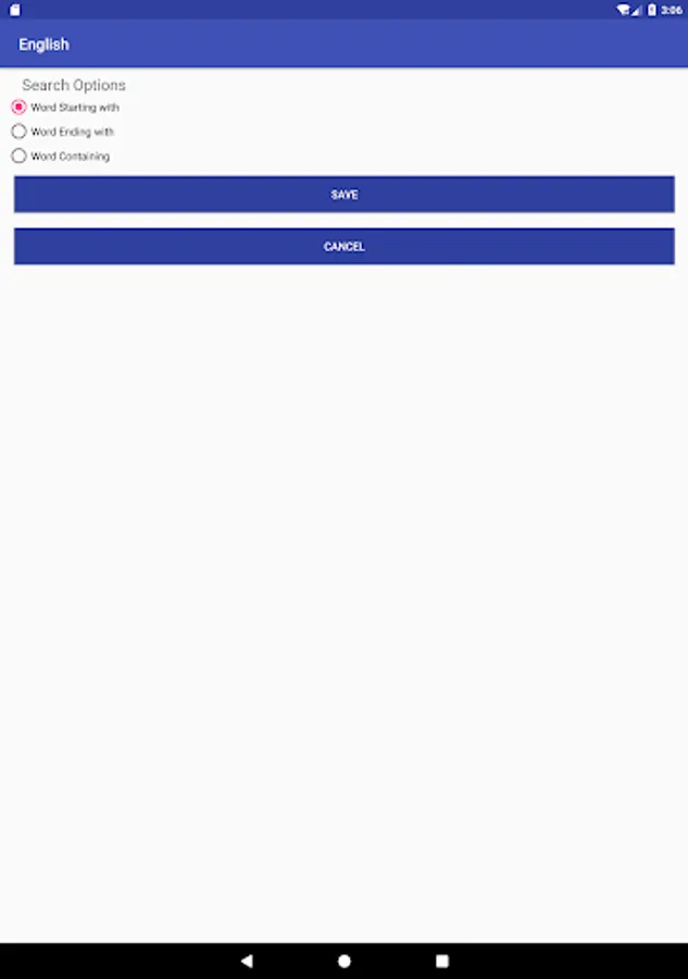 - "Search Options" feature that help to search the word "Starting" with searching word or "Ending" with searching word or "Containing" the searching word.