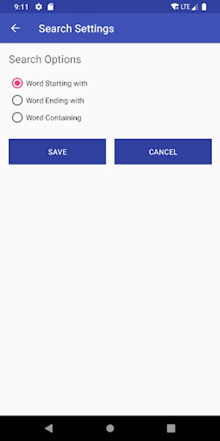 - "Search Options" feature that help to search the word "Starting" with searching word or "Ending" with searching word or "Containing" the searching word.