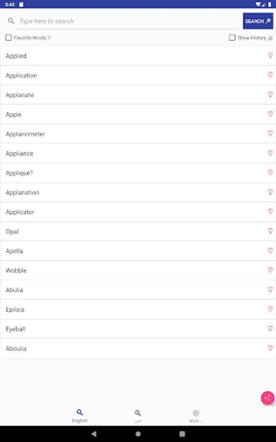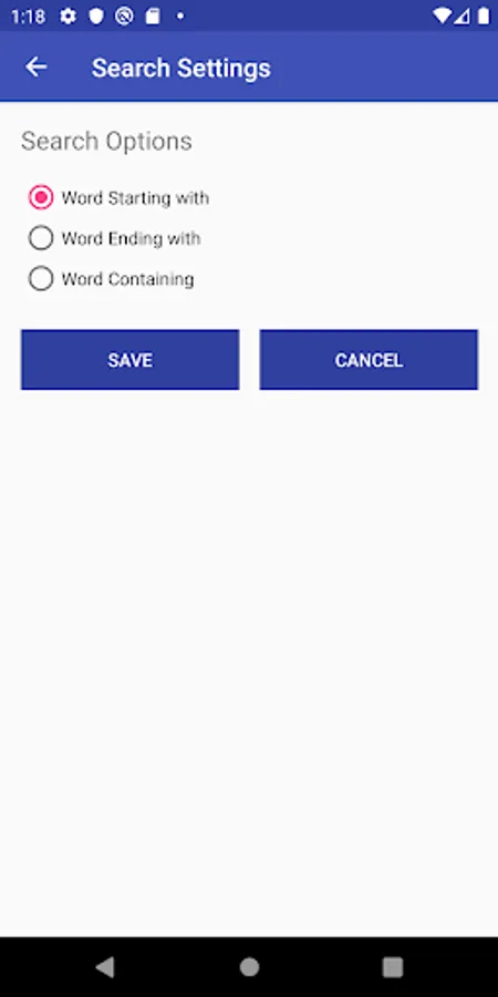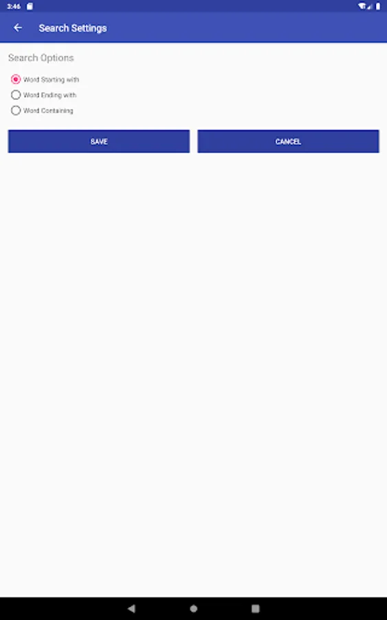- "Search Options" feature that help to search the word "Starting" with searching word or "Ending" with searching word or "Containing" the searching word.