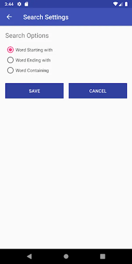 - "Search Options" feature that help to search the word "Starting" with searching word or "Ending" with searching word or "Containing" the searching word.