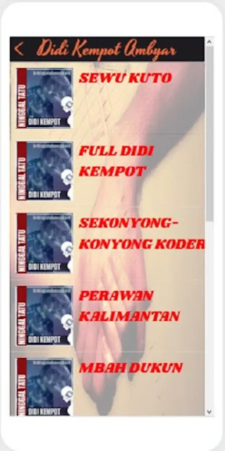 This application contains all the songs sung by Didi Kempot specifically sung for ambyar friends.