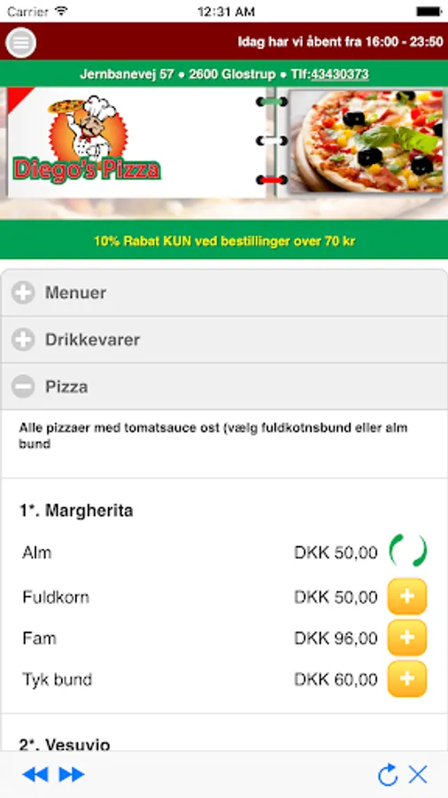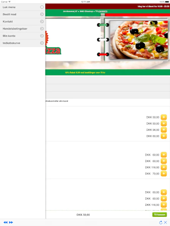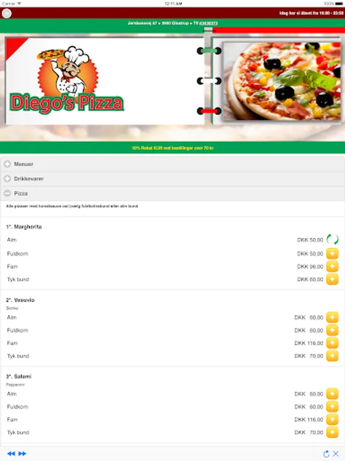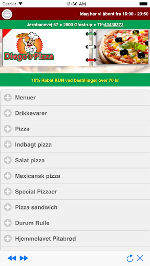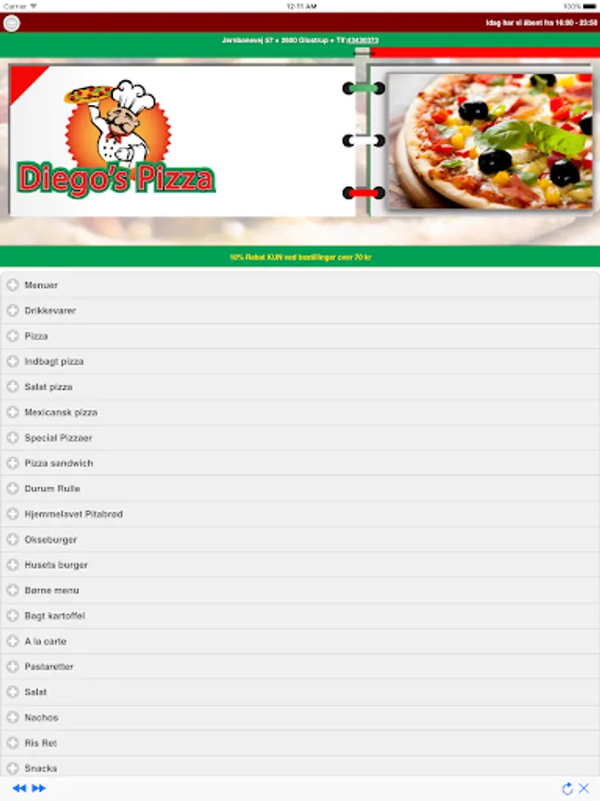 With diego Pizza's web app, you can now order food directly from your phone. Diego Pizza in collaboration with Meal4U.dk got their own app for Food orders.