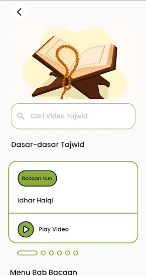 Learning Videos: This application provides a collection of learning videos that provide examples and demonstrations of the practical application of recitation. This video helps users to understand the tajwid rules better through visualizations and real examples.