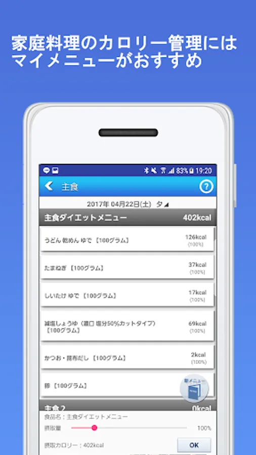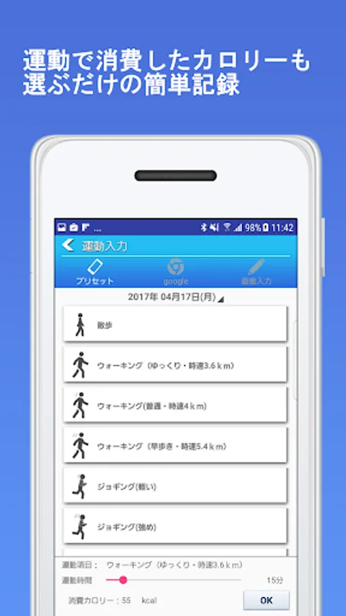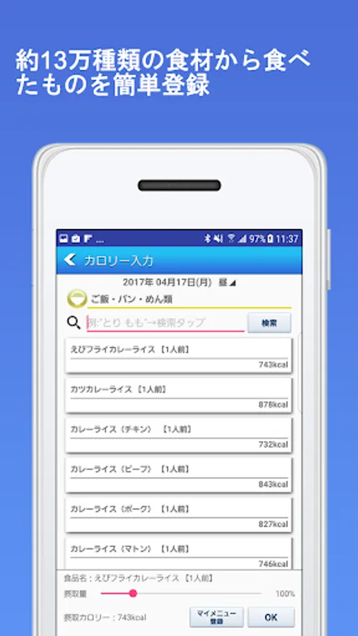 ②豊富な食材リストからの簡単カロリー入力