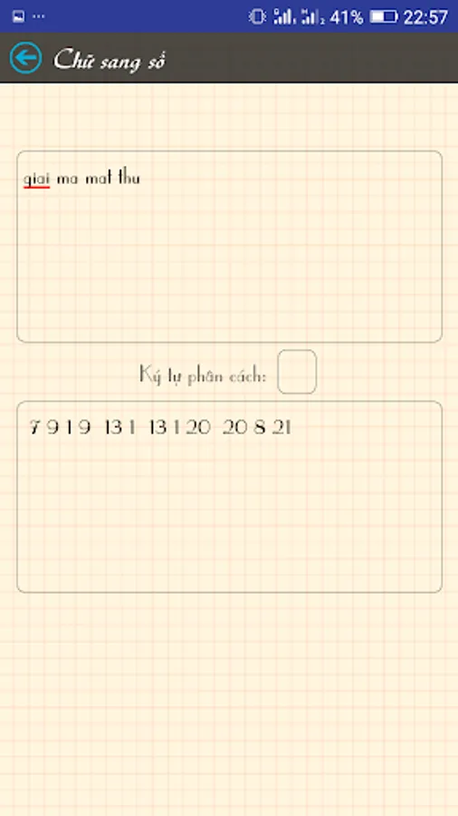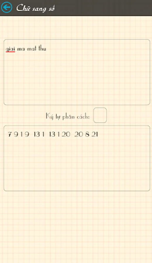 - Replace letters with numbers (a b c d ... -> 1 2 3 4 ...) and translate the numbers into letters