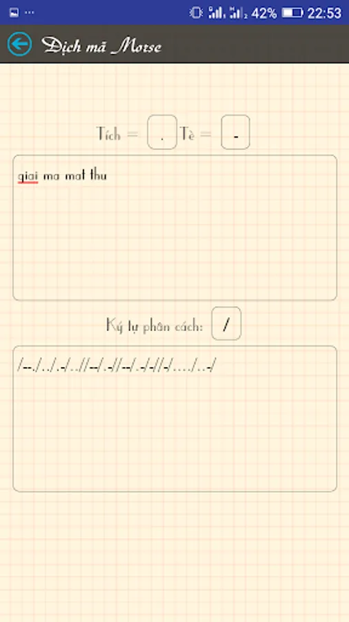 - Translate morse words into text and vice versa, dot (.) dash (-) can be customized into any character