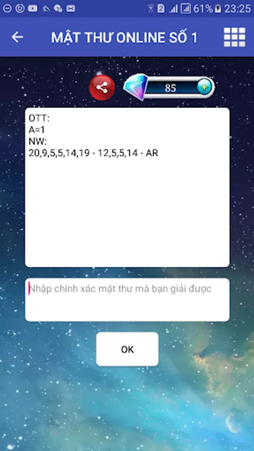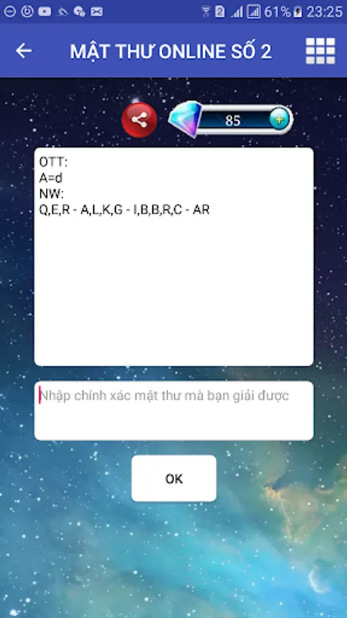 Secret Letters Online is an online decryption software with a rich, unlimited number of secret messages, always updated continuously, hoping to satisfy the passion of deciphering messages for skilled people!
