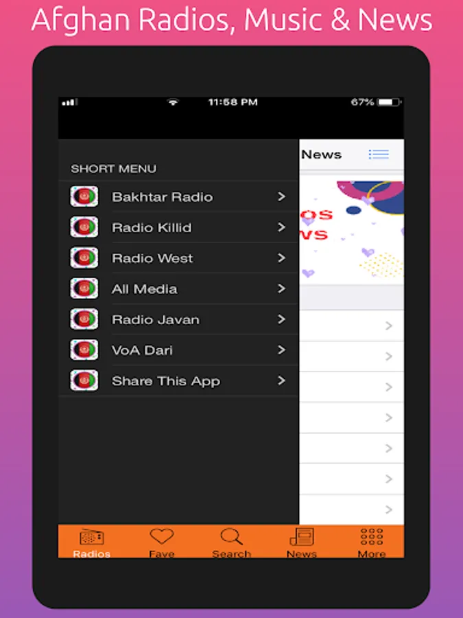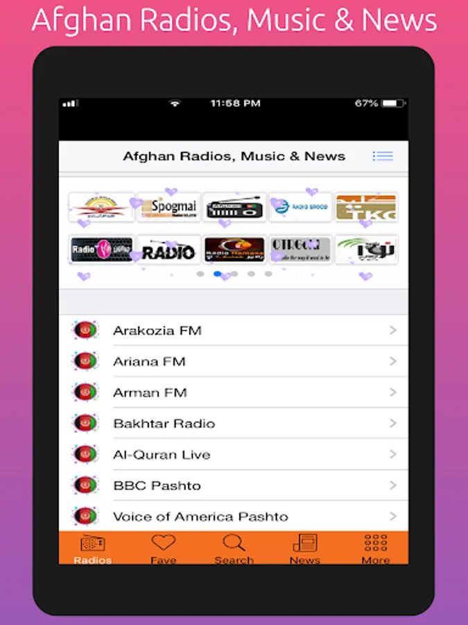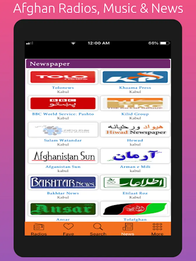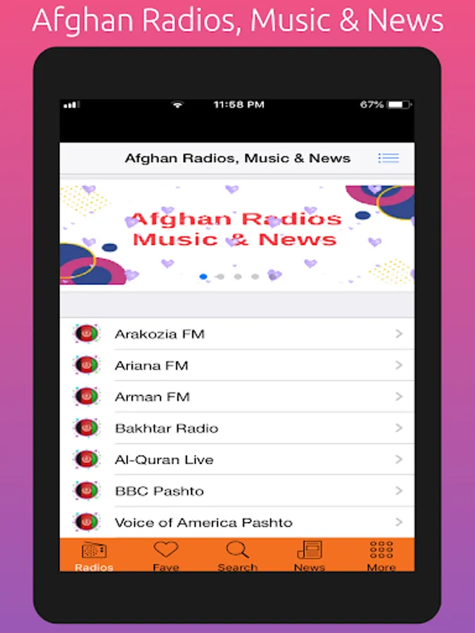 If you wanna listen to Afghan All Live Radios or Music and want to get latest and Afghan breaking News then this app will certainly help you. We have all Afghani Newspapers & Media Online. Afghan Radio is a unique app which will help you to listen to all Afghanistani's radio live streaming. It is not a matter where you are in the world!