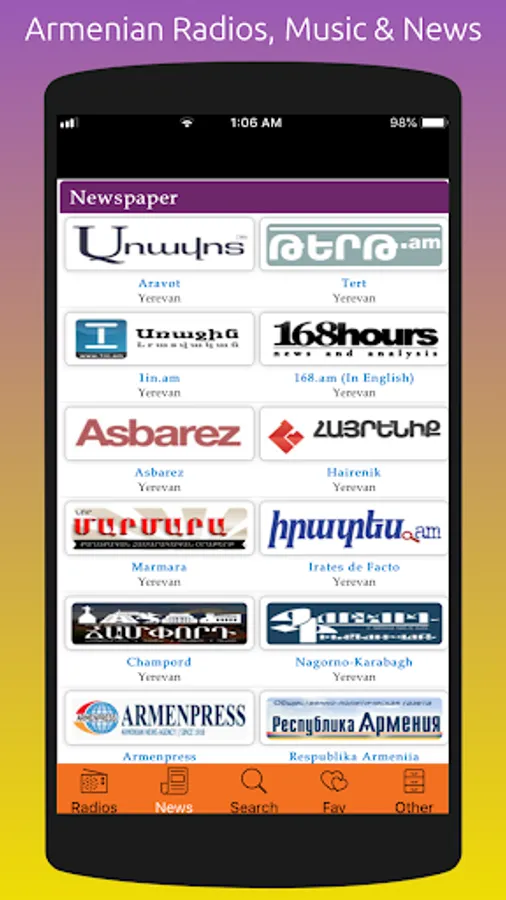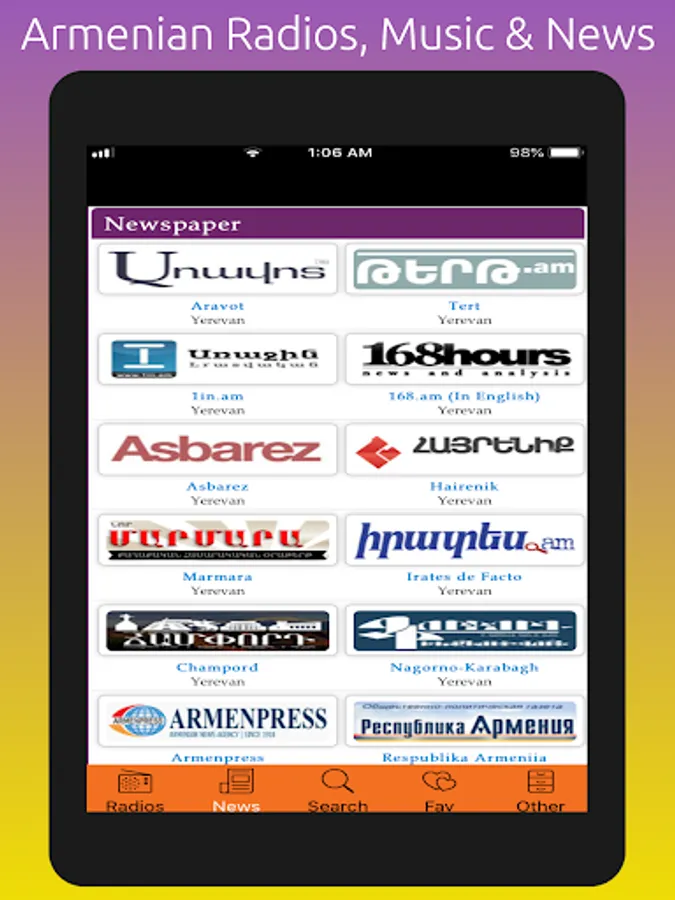 We have collected almost all radios and newspapers from Armenia for you. Listen to Armenian All Radios, Music & Read All Armenian Newspapers Online For Free with our app!
