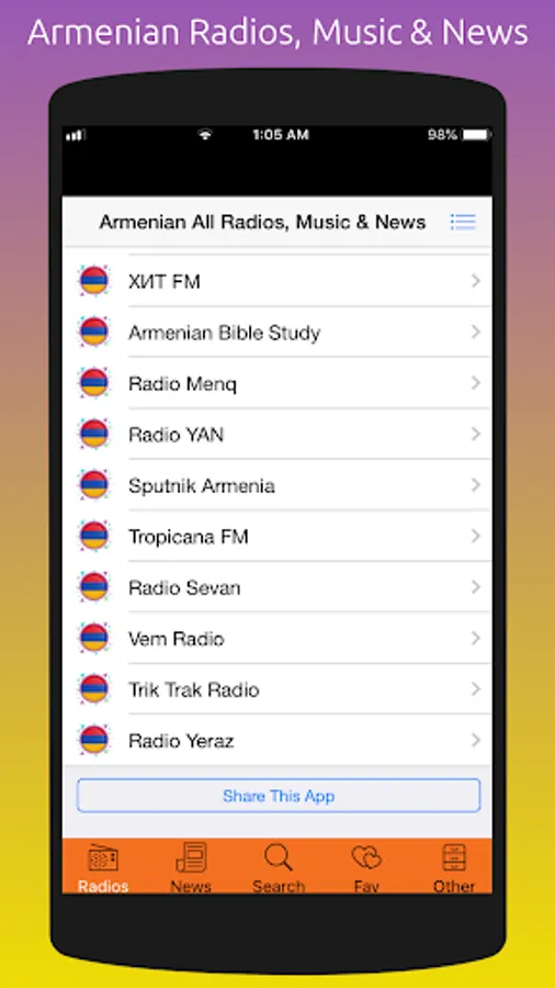 Armenian All Radios, Live Music and All Newspapers Online is an extra-ordinary app which will help you to listen to all live radio from Armenia and beyond. It has more than 70 radio live streaming. You can use and listen to this app without any buffering... it is not a matter wherever you are in the world! Armenian All Radios, Music & Armenian Newspapers
