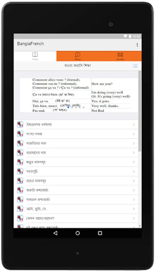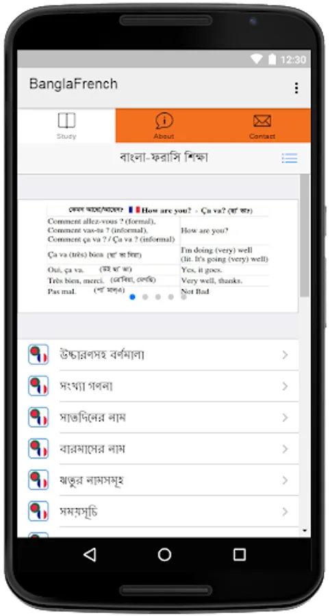 Our new app called Bangla to French Learning is totally free of cost and made exclusively for you, so that you can learn basic French/ Français language from Bangla/ Bengali. In this application you will get more than 30 chapters including video tutorials. If you are looking for Easy French Learning way then Bangla-French Learning App is the best solution for you.