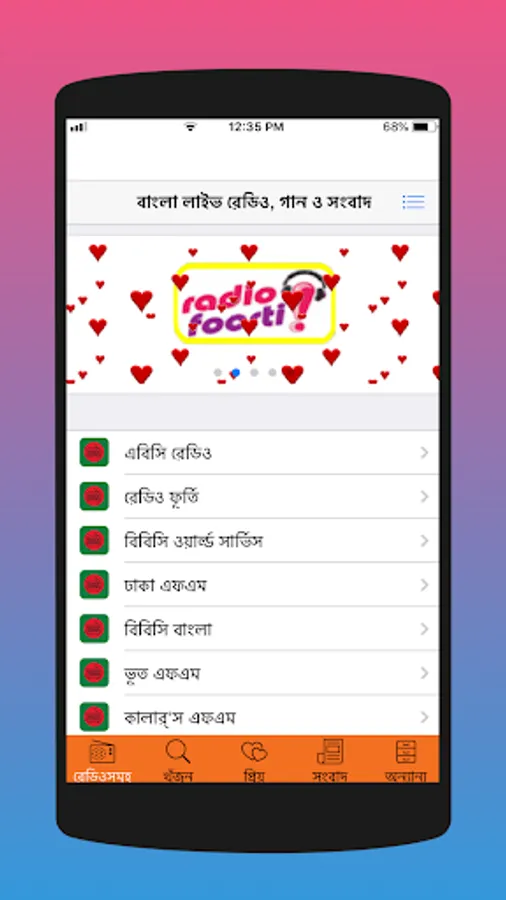 The app has the facility to separate the favorite radio through the like button. The app also has the option to search for any radio.