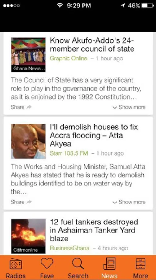 In this app you will enjoy all kinds of music of Ghana. We have collected more than 120 live radios from Ghana. Beside that you can read real time latest news of Ghana in our app. If you want to get Ghana News then please use our app. Ghana All Radios, Music & News: All Ghana's Media For You