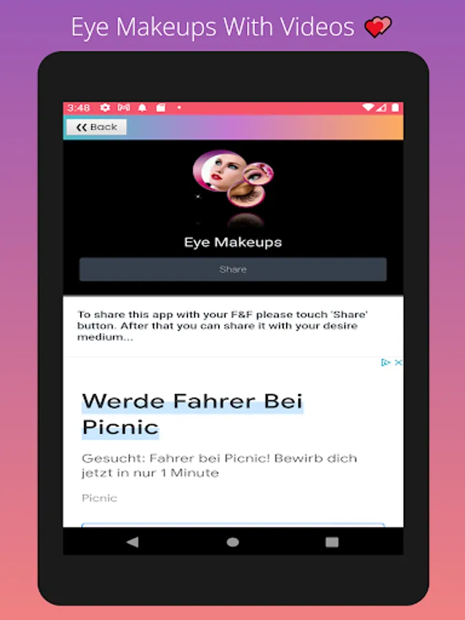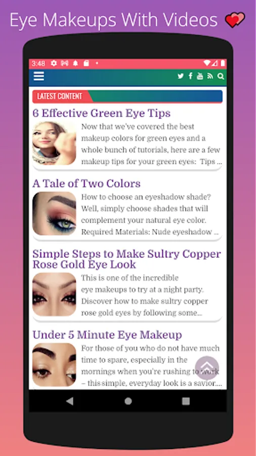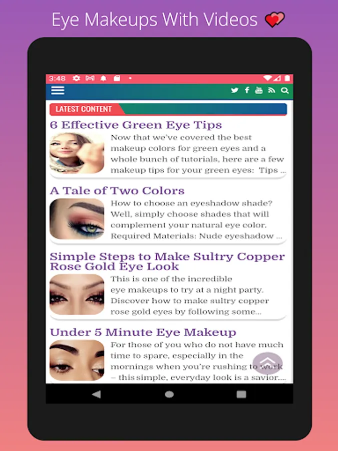 We are here to provide you Eye Makeups Step by Step Guidelines With Videos so that you can Have Quick Makeups. Eye Makeup App will make your life easier than you think. Our App is popularly known as DIY Easy Eye Makeups App which will help you Step by Step Makeup with lots of videos.