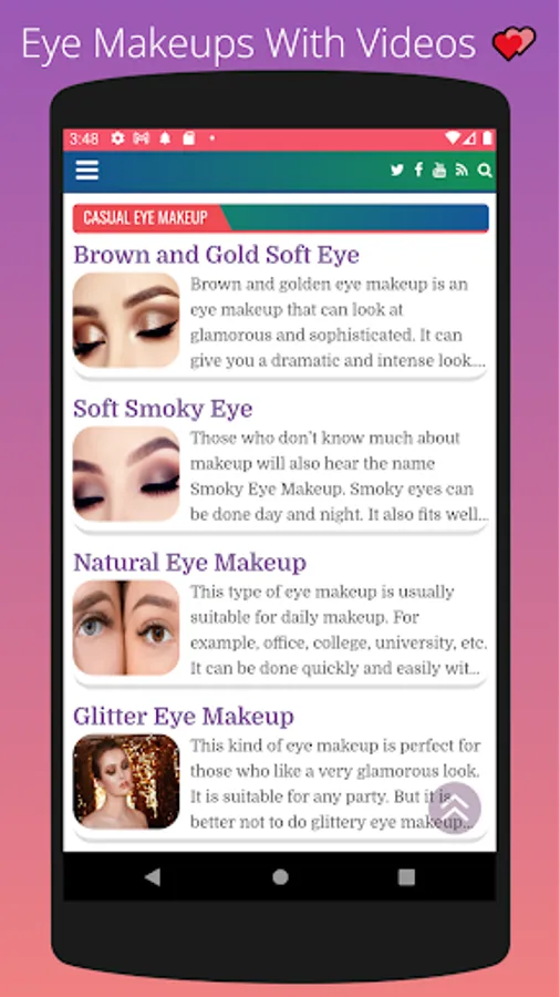 As you know Eye is one of the most important part of your body. So if you can make that more beautiful then you will be in the center of concentration. That's why we made this Easy Eye Makeup App With Step by Step Video Guideline. In this makeup Tutorial Video App we have included more than 50 tutorials for you.