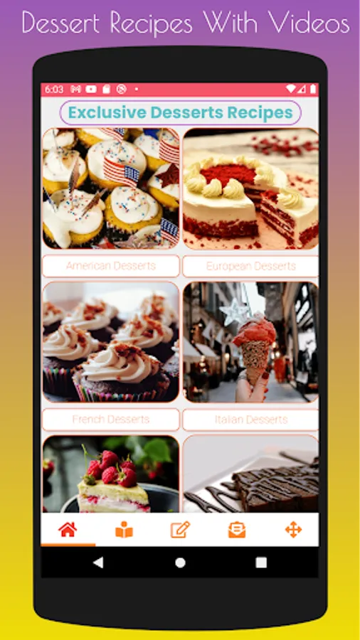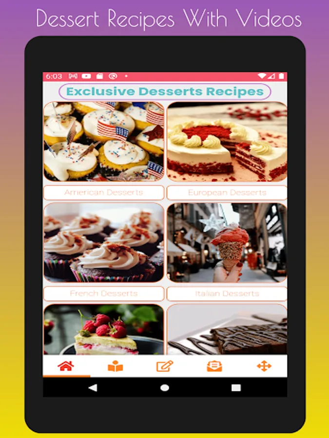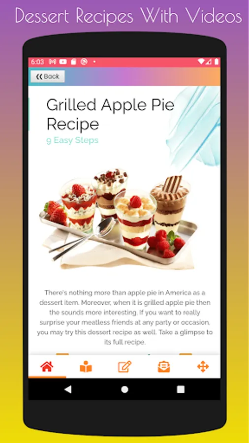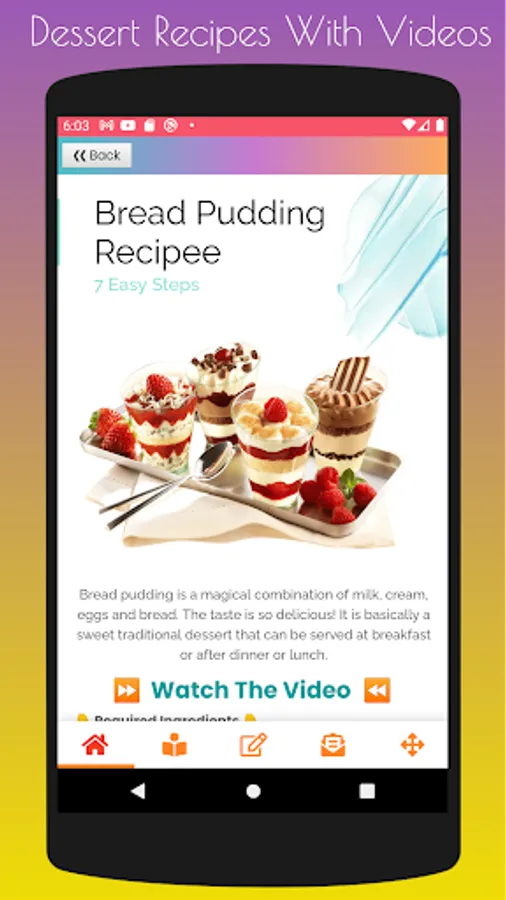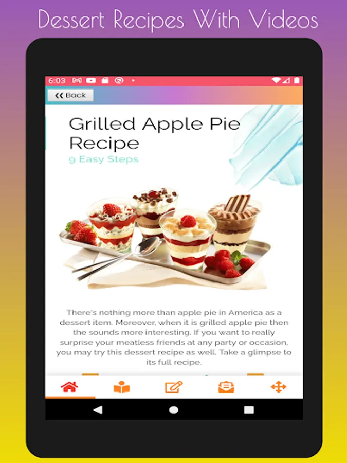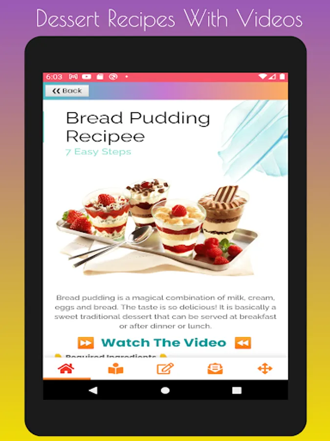 Our App is popularly known as Dessert Recipes App which will help you Step by Step Dessert Recipes with lots of videos. Dessert Recipe Tutorial App With Step by Step Guide will help you to make yummy, tasty Dessert at home!