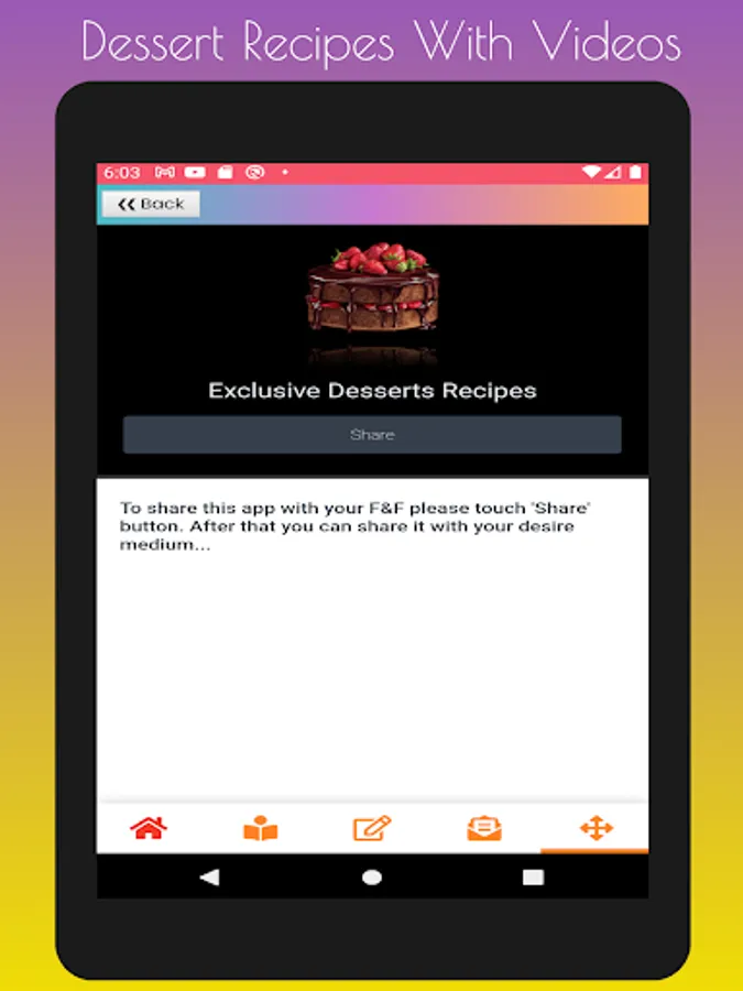 This Recipe app is a free app which has lots of videos, that means you don't need any other app to have tasty Dessert at home! From now you can say 'Goodbye' to Restaurant.