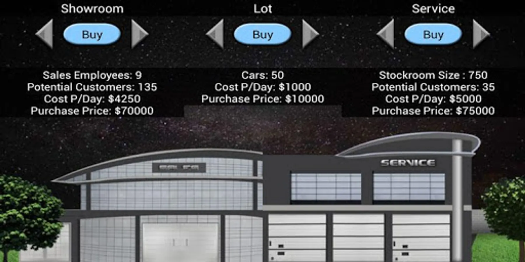 Car Dealership Tycoon is a turn based strategy game. You own the dealership therefore you make the decisions.