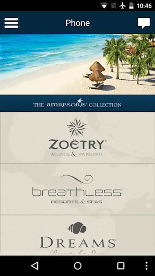 Vacationing at AMResorts? With the free Unlimited Connectivity by AMResorts app, on-property guests may use their own smartphone to place calls and send messages over the resort’s Wi-Fi network without incurring international roaming charges. Once connected to the hotel’s WiFi network, guests can register their mobile device and: