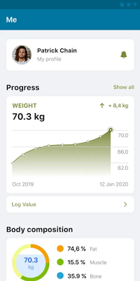 - Monitoring of progress. The most important thing is the results! View your progress: weight, measurements, BMI and many more from the app.
