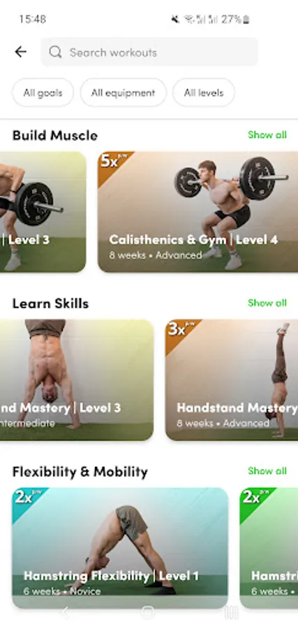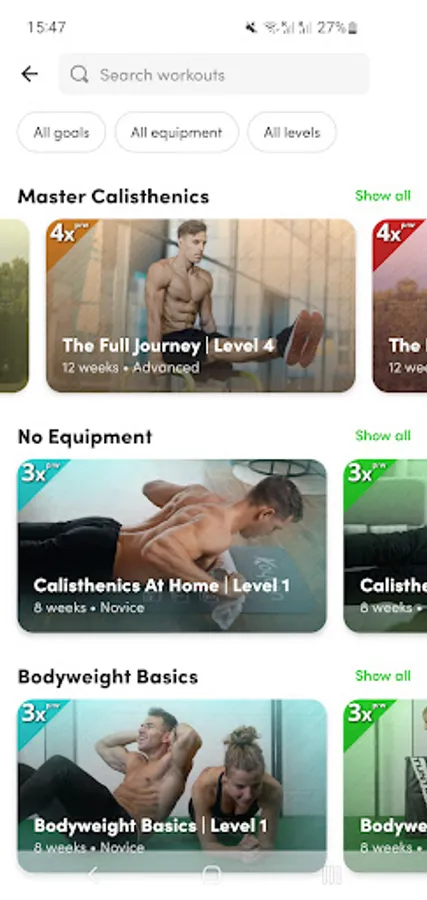 Start your Calisthenics Journey with the #1 Calisthenics app! With calisthenics you create a muscular, strong and athletic body while you work on impressive skills.