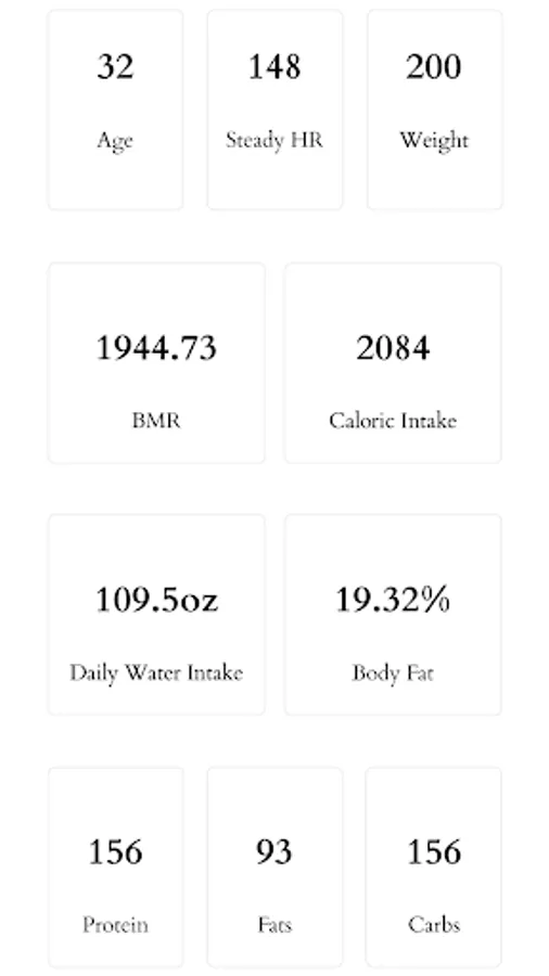 The EWB Health Calculator. This calculator will design you a personalized diet depending on your individual goals, calculate your body fat and stead-state heart rate, and store your health-related information.