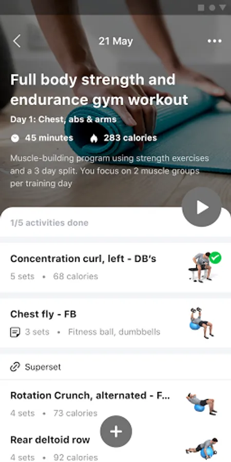 Predefined workouts and the option to create your own workouts
