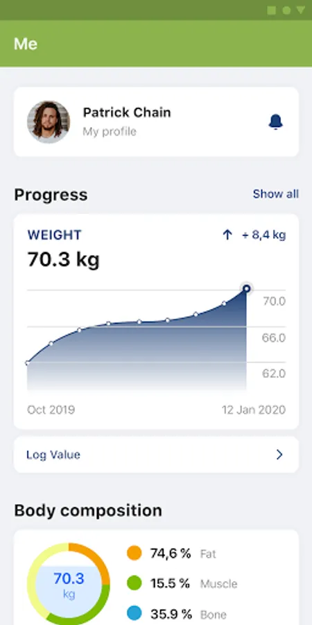 Enter your weight and other statistics and track your progress