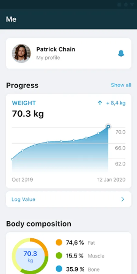 Enter your weight and other statistics and track your progress