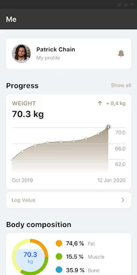 Enter your weight and other stats and track your progress
