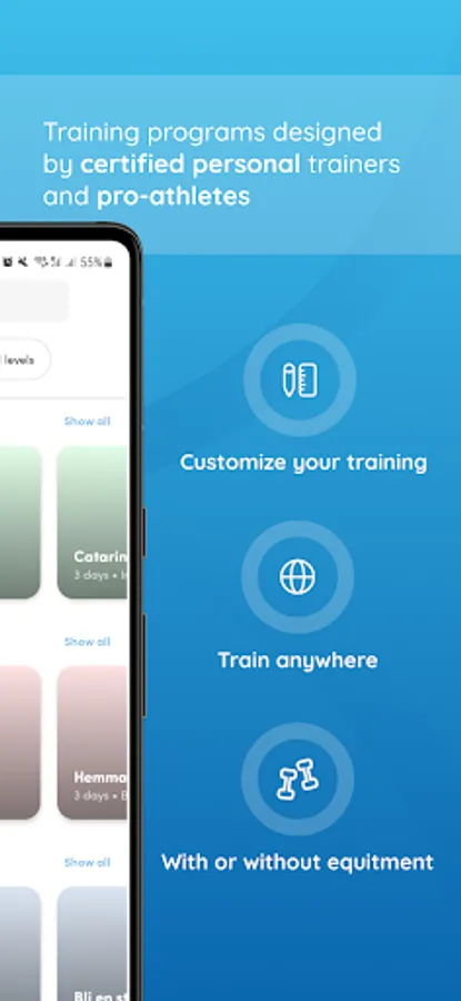 - Använda tiotals färdiga träningsprogram och skapa dina egna program.