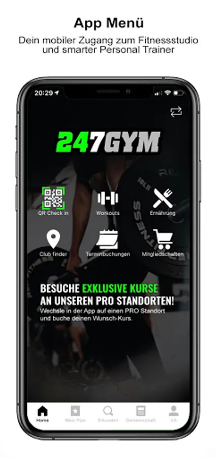 BITTE BEACHTEN: SIE BRAUCHEN EINEN 24/7 Gym ACCOUNT FÜR DEN ZUGANG ZUR APP. WENN SIE MITGLIED SIND BEKOMMEN SIE DIESEN UMSONST IN IHREM STUDIO!