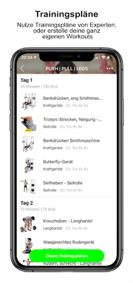 Vorgegebene Workouts und die Option eigene Workouts zu erstellen