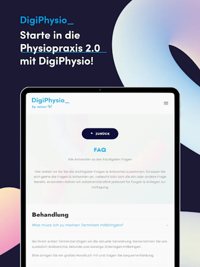 Get your patient processing on your device with the DigiPhysio app and benefit from our uncomplicated and fast service.
