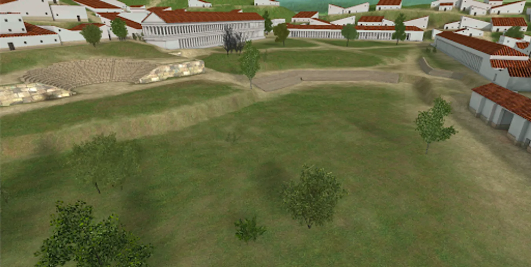 The reconstructions were researched and adapted from models provided by James Huemoeller for all primary monuments except for the West Stoa. The West Stoa is the least accurate of the reconstruction models currently because the upper level would likely have been shorter than the lower and the West Stoa was never completed after Roman occupation following Caesar gifting Morgantina to Spanish mercenaries in 211 BCE.