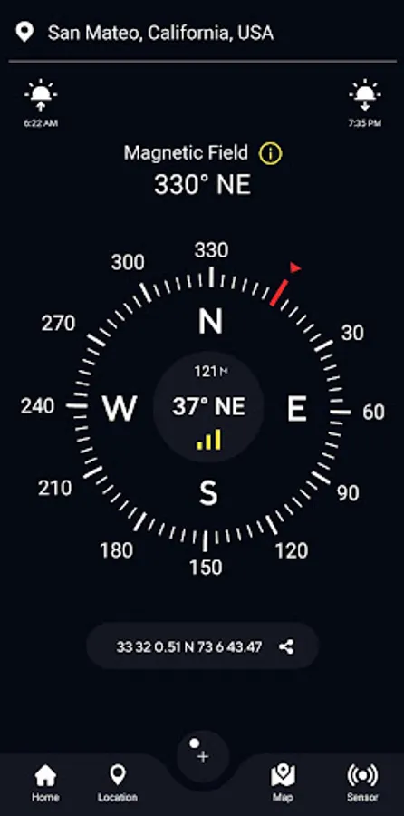 💎 Best Digital compass app for android show the Sunrise & sunset timing