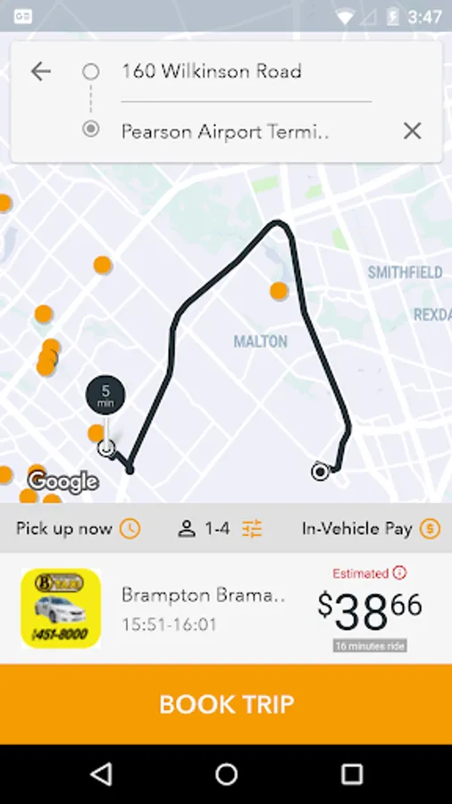 Order a taxi cab in in Brampton, Halton, Mississauga, Bolton, Orangeville in Ontario from Brampton Bramalea Kwik Kab using your Android phone