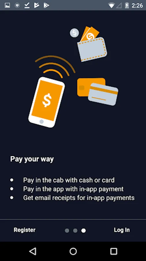 • Push notifications alert you when your cab is on the way, and when it has arrived.