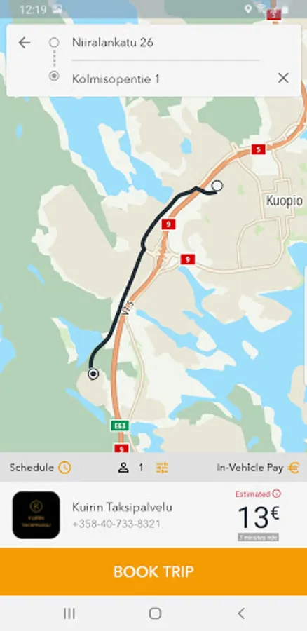 Order a taxi cab in Kuopio region in Finland from Kuirin Taksipalvelu using your Android phone