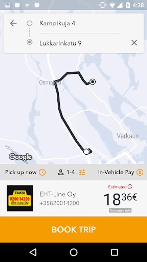 Order a taxi cab in Pohjois-Savon and Pohjois-Karjalan region in Finland from EHT-Line Oy using your Android phone