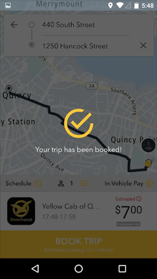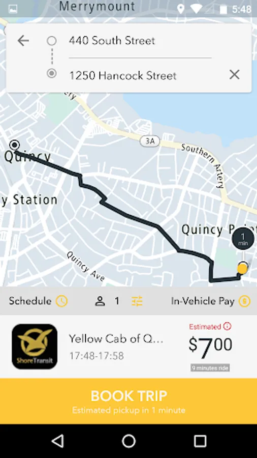 Order a taxi cab in Quincy, Weymouth, Braintree, Randolph, Milton and Boston from Yellow Cab of Quincy (operated by Shore Transit) using your Android phone