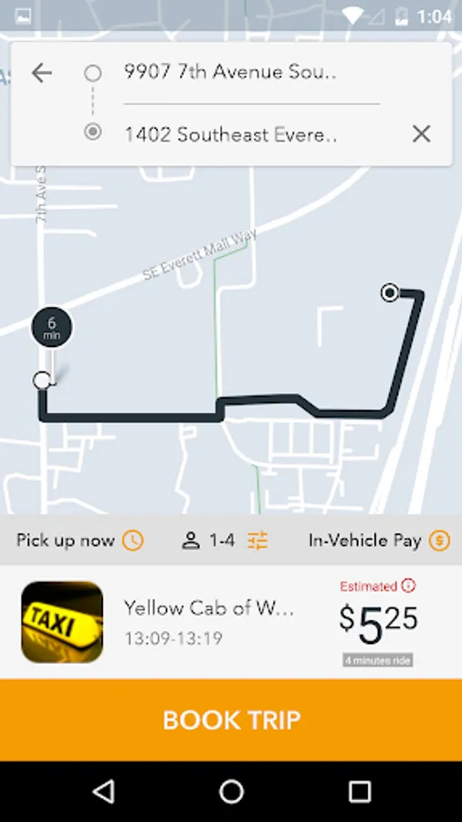 Order a taxi cab in Everett & surrounding areas from Yellow Cab of Washington using your Android phone