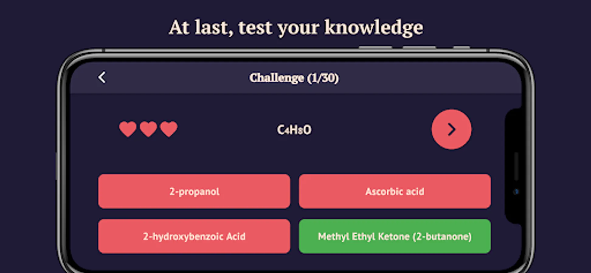 - 101 levels and 27 challenges teaching, training and testing 161 common chemical compounds/molecules closely related to our daily life.