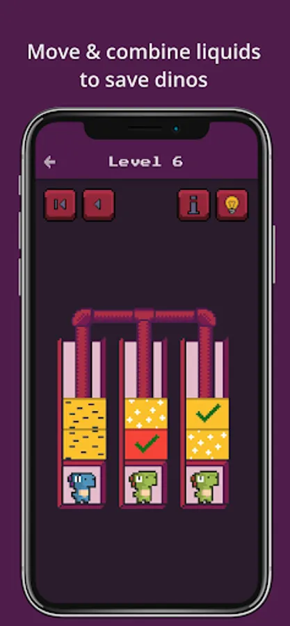 Goal: neutralize all liquids above all the dinos.