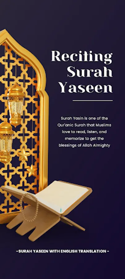 Surah Yasin with English translation is an application featuring the full verses of Surah Yaseen along with their English translation. Surah Yasin is one of the Qur'anic Surah that Muslims love to read, listen, and memorize to get the blessings of Allah Almighty. Through this application, you can read and memorize the verses of Surah Yasin, and refresh your soul with heart touching recitations of the Surah.