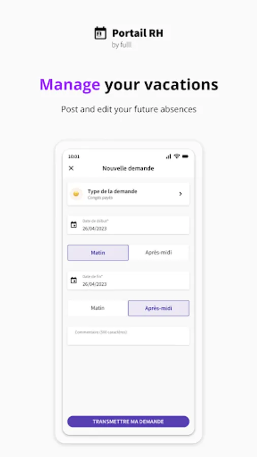 From the application, you can easily submit and edit your leave requests, view your calendar and the calendar of your team and access to your personal documents and information.