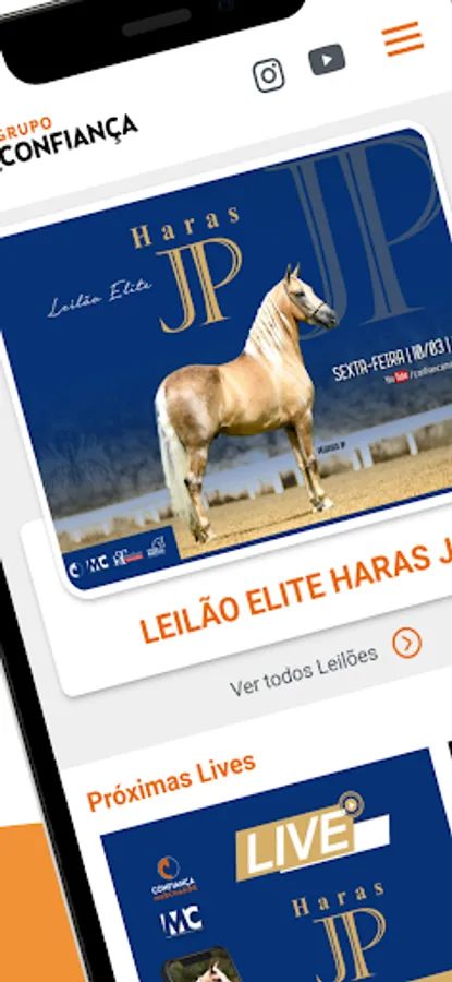 Grupo Confiança, always thinking about technology, innovation and the comfort of our customers, has just launched the Grupo Confiança app, where it will be possible to access all our services, such as auctions, lives and news. In addition, the app has a Customer Area, where our customers can consult their purchases, sales, download signed contracts, consult pending subscriptions, issue duplicate slips, make payments via PIX, update registration data, view bids offered and have a complete history of all the events you have attended.