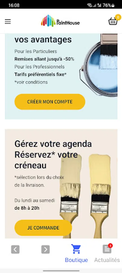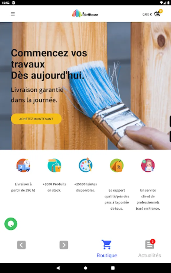 Online sales platform for professional painting materials with delivery.