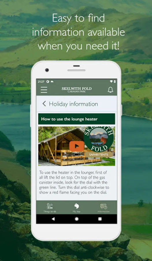 To help with your visit to Skelwith Fold, this app also includes a full FAQs section with video guides to answer any questions you may have before and during your stay.