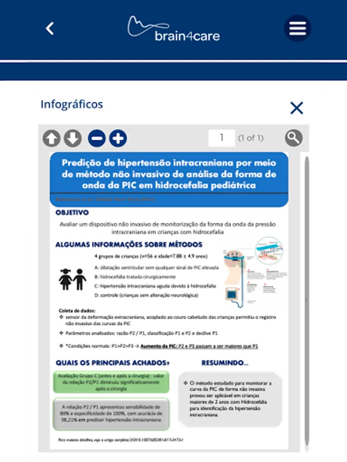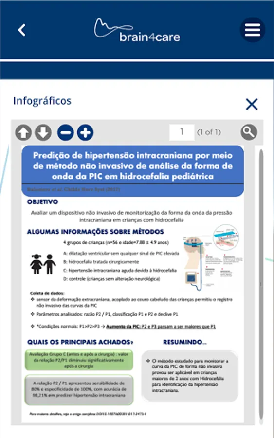 Brain4care is a Brazilian startup, founded in 2014, which was born from the development of a pioneering technology in the world capable of identifying changes in pressure and intracranial compliance through the intracranial pressure pulse morphology (PIC curve) and its tendency to over time, in a totally non-invasive way. Brain4care's purpose is to challenge the limits of medicine to experience stories of health and happiness. Its mission is to reduce the pain and suffering of millions of people by establishing a new vital sign, accessible to everyone and anywhere. The purpose of this application is to spread knowledge and contribute to the continuing education of health professionals, having as main objective the quality of care provided to the patient.